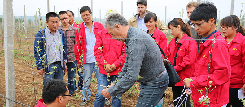 公司技術研發團隊先后數次遠赴歐洲實地考察,結合國際先進的栽培技術和管理方法共同打造中國技術最先進、規模最大、質量最優的現代化蘋果產業示范基地。
