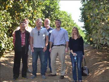 2014年6月12日,陜西華圣果業公司副總經理尚大偉在南非Chennells 果園實地參觀考察柑橘。Chennalls 果園農場主等一行對陜西華圣果業公司的來訪表示熱烈的歡迎與親切的問候,并對農場經營等情況進行全面細致的講解。 在此期間陜西華圣果業公司與Chennells 農場主進行友好洽談,對果園情況進行全面細致的了解,對柑橘的成熟期,生長習性等進行詳細的詢問,對果園種植的柑橘進行品嘗。 通過考察柑橘口味、種植情況、銷售情況,最終與Chennells 達成進口協議,將引進Chennells 的柑橘在中國市場進行推廣。此次合作充分體現了優勢互補,互惠互利的原則,對推動雙方業務實現新增長具有重要意義和價值。