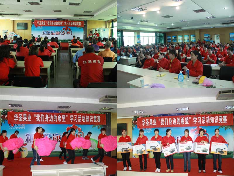 9月28日下午在果業(yè)公司多功能培訓(xùn)中心舉行了“我們身邊的希望”學(xué)習(xí)活動(dòng)知識(shí)競(jìng)賽和頒獎(jiǎng)活動(dòng),各部門全員參加,本次競(jìng)賽激烈紛呈,員工們搶答踴躍,回答正確者得到了精美的禮品。活動(dòng)中間還有來(lái)自果業(yè)工廠分選車間和行政后勤員工的即興表演和精彩街舞,幽默的表演和優(yōu)美的舞蹈給嚴(yán)肅緊張的比賽現(xiàn)場(chǎng)增加了歡樂(lè)氣氛。競(jìng)賽活動(dòng)結(jié)束后,部門經(jīng)理和工會(huì)委員代表為本次知識(shí)問(wèn)卷獲獎(jiǎng)人員頒發(fā)了獎(jiǎng)品,獲獎(jiǎng)人員名單如下: