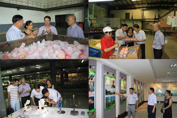 在公司副總經理佘均安的陪同下,先后視察了公司萬噸氣調保鮮庫、現代化的光電自動分選線,對于氣調庫周年的保鮮儲存能力和農產品的商品化包裝加工給予了高度贊賞。