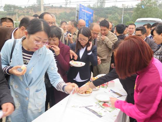 會上,公司展示供來賓品嘗的魔笛蘋果受到熱烈追捧,前來品嘗的領導、媒體記者絡繹不絕,對蘋果的口感和品質稱贊有加。
