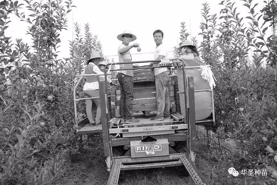 華圣技術(shù)人員在多功能平臺(tái)上采摘蘋(píng)果