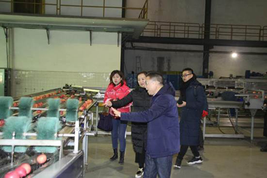 公司執行總經理彭小強、果業工廠總經理李蕾,期貨事業部等陪同參觀與座談。媒體團首先參觀了工廠的氣調庫、交割庫及光電分選線,對來訪者提出的問題,執行總經理彭小強給予了詳細的解答與介紹,來訪者對我司標準化的生產有了深刻的認識。